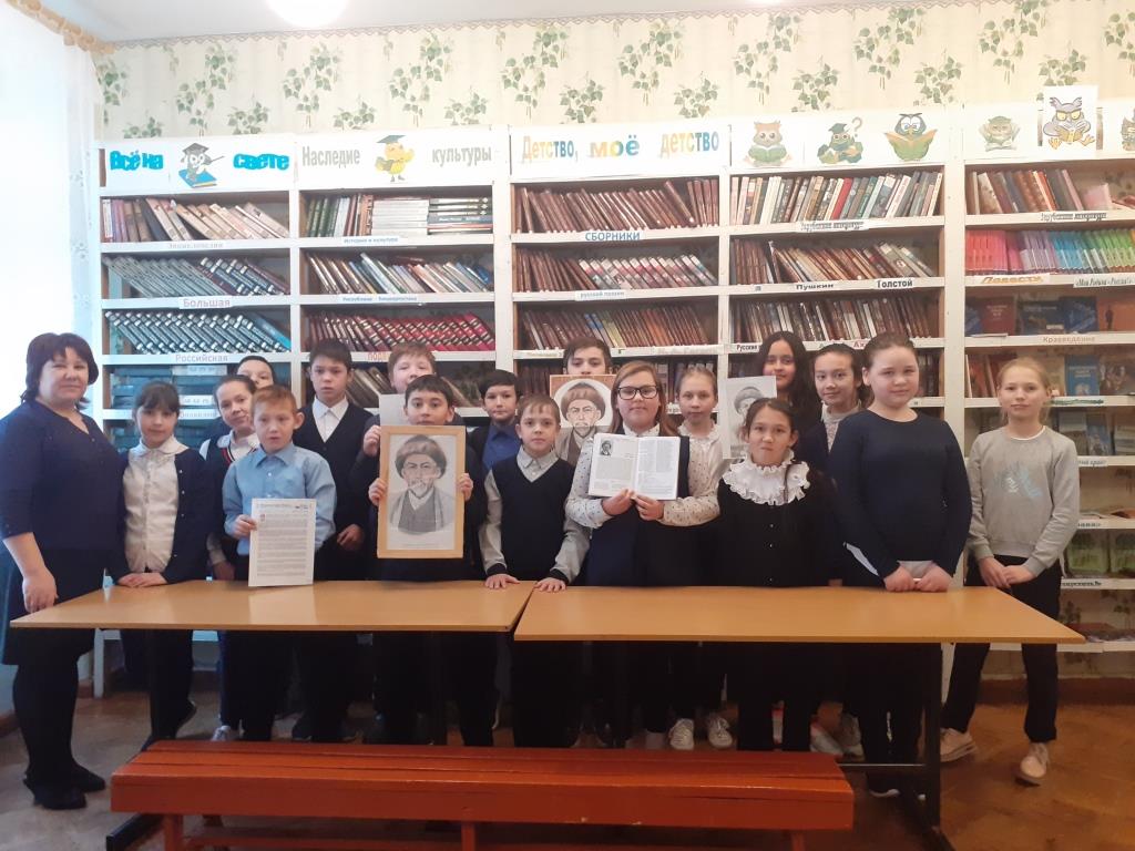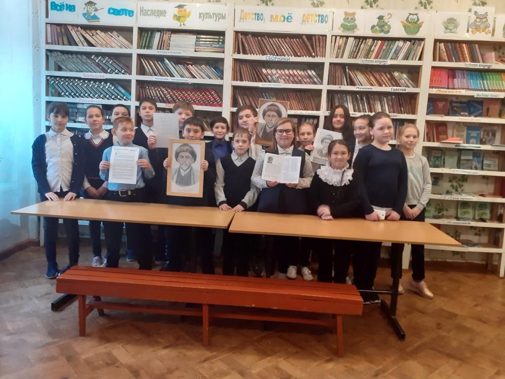 Открытый урок продолжился в школьной библиотеке, где учащиеся читали стихи поэта.