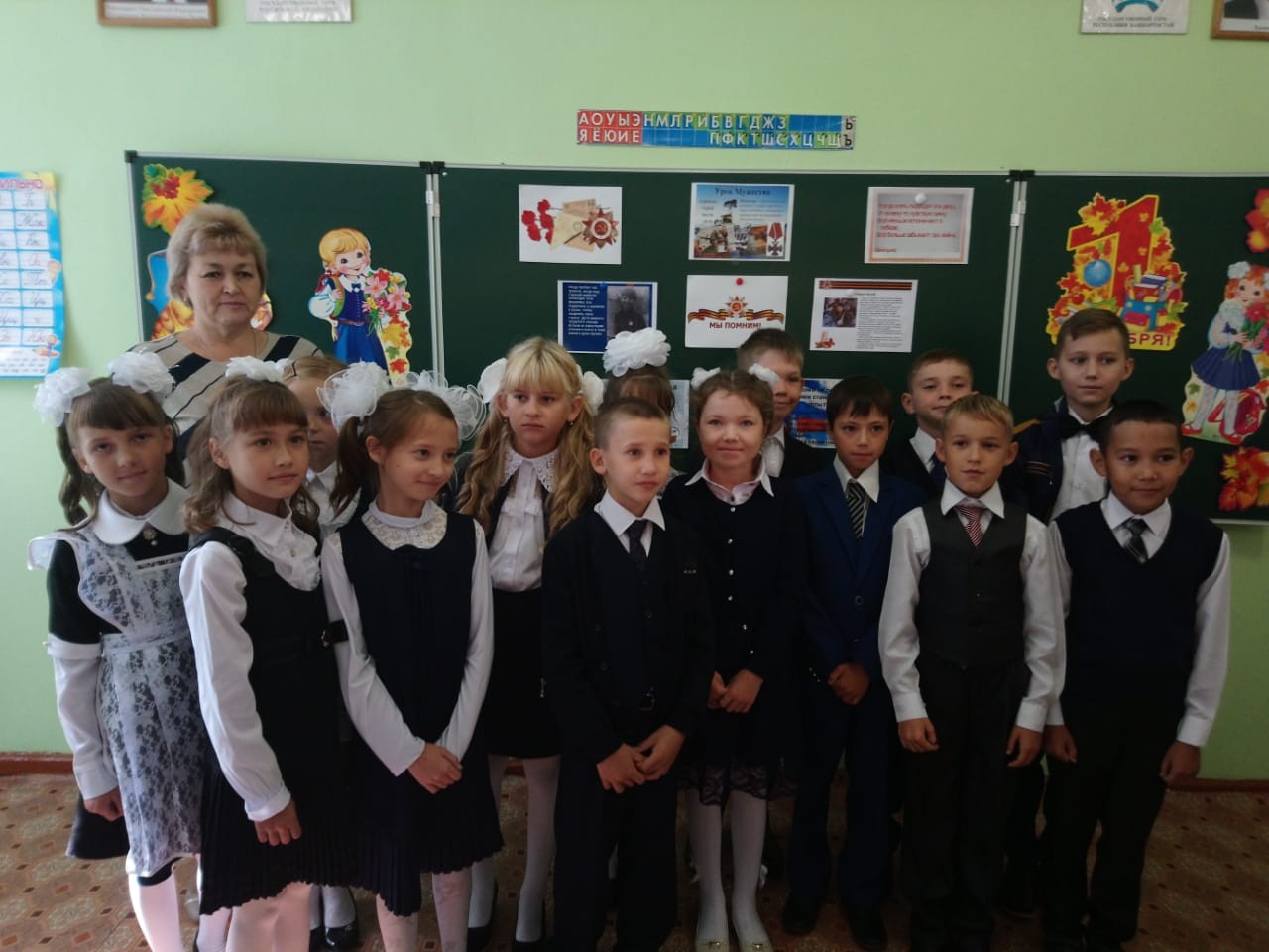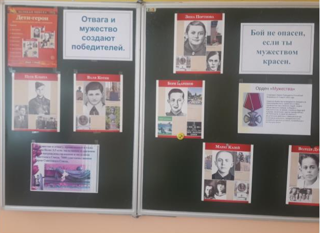 Звучит песня «Дети войны». Урок Мужества в 4А классе посвящен совсем молодым участникам ВОВ. Валя Зенкина, Зина Портнова, Леня Голиков, Витя Хоменко, Марат Казей, Надя Богданова и другие являются примером настоящего мужества и героизма, бескорыстного служения своей Родине. Но мужество дети проявляли не только на фронтах или в партизанских отрядах, но и в повседневной своей жизни в тылу. О том, как жили в это тяжелое время шафрановские школьники, как они помогали раненым в эвакогоспитале, с какими трудностями сталкивались в учебе- об этом тоже говорят сегодня в классе.
